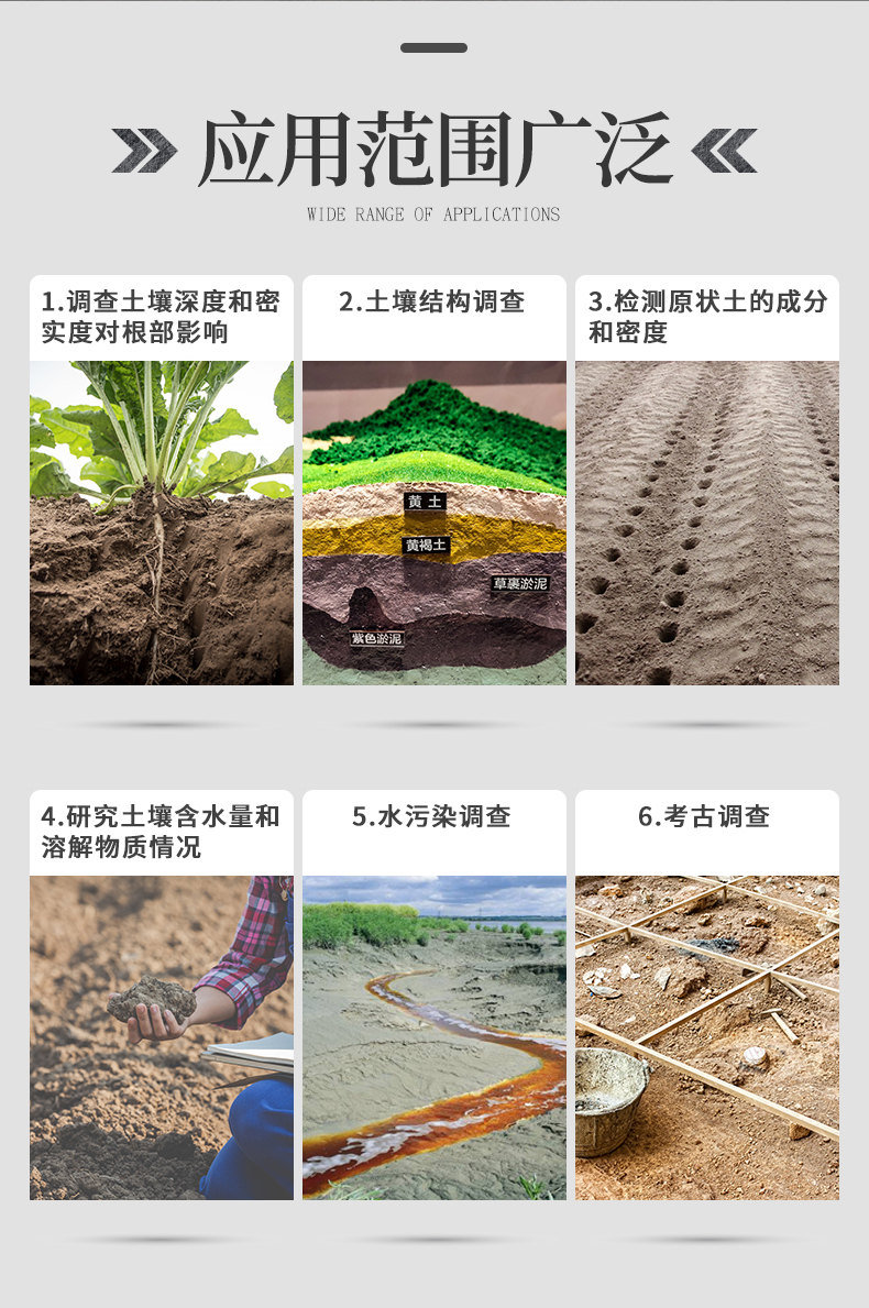 ● 常規土層取樣理想深度1-5米,松軟土層可達10米!